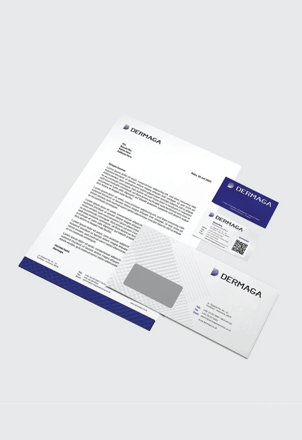 Kop Surat, Amplop, Kartu nama, Invoice, Seragam, helm, Rompi, Stempel, Truck Branding dan beberapa touchpoint ini di eksekusi dengan memperhatikan kebutuhan dan juga diselaraskan dengan Sub-Brand dari PT. Dermaga.Perancangan Totem yang unik dan pembuatan wayfinding juga melengkapi identitas pada Headquarter PT. Dermaga di Surabaya..