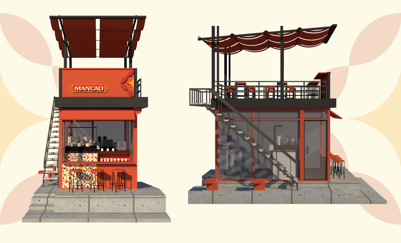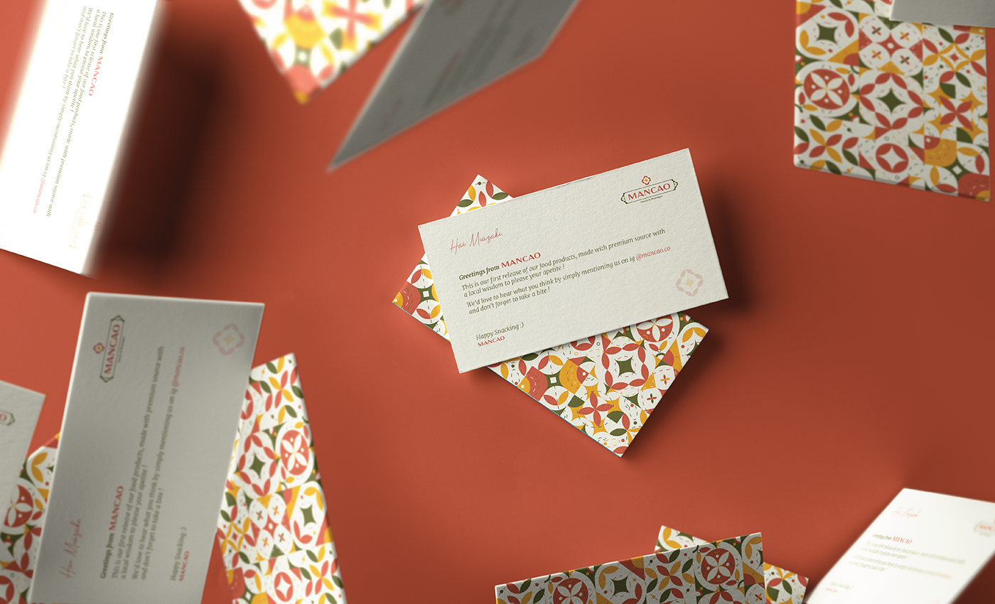 Mancao terinspirasi dari bentuk dumpling yang menyerupai awan yang dikaitkan dengan rasa yang ringan. Konsep desain ini kemudian dibawa kedalam gaya Desain Peranakan Asia dengan warna dan pattern yang lebih modern.
